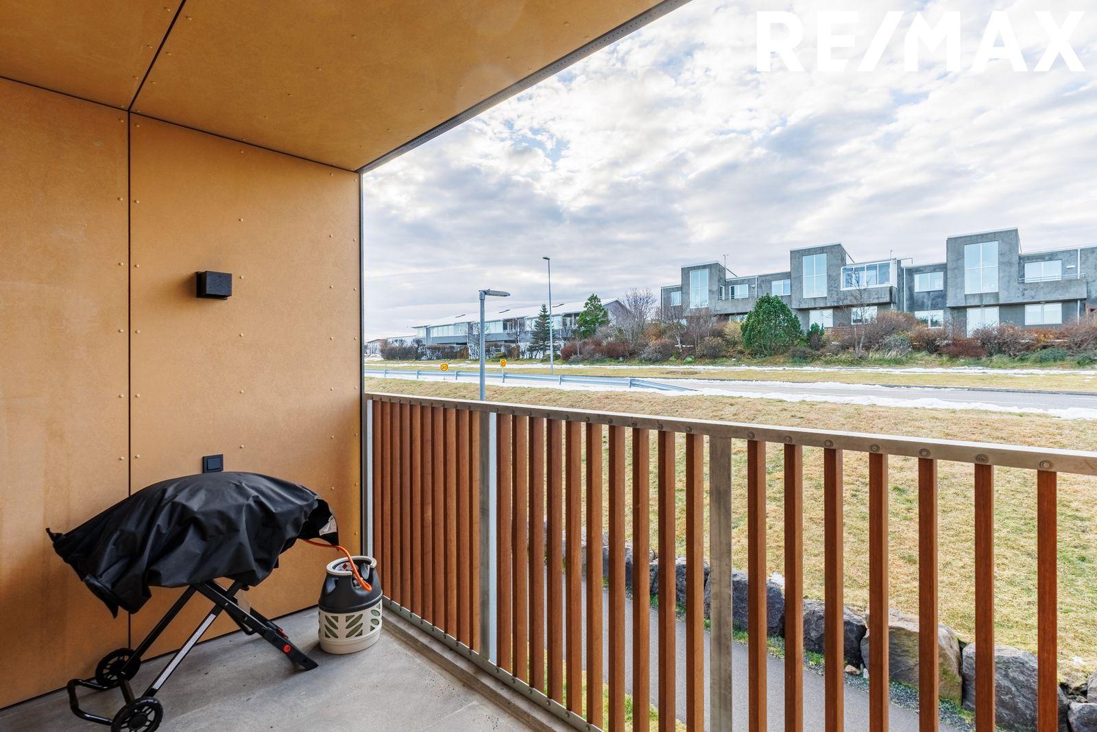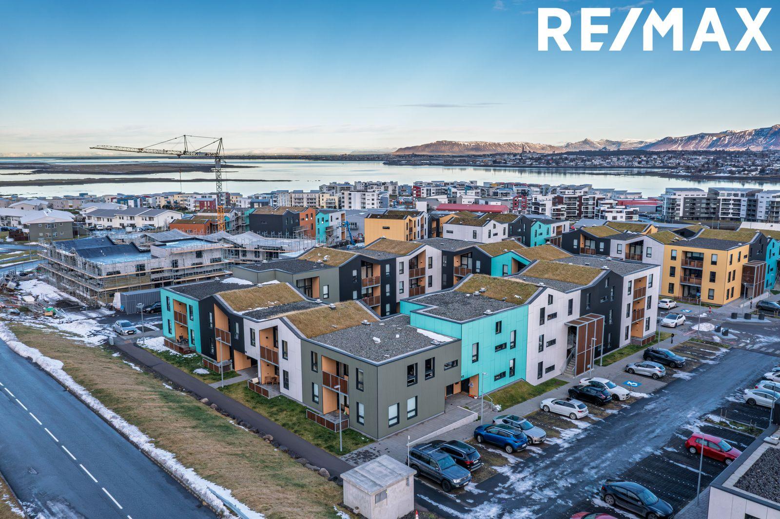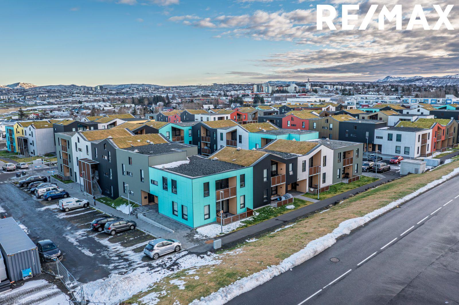 Dagbjartur Willardsson löggiltur fasteignasali og RE/MAX kynna, Eskiás 5F, íbúð 0208 fnr. 252-8335- SÉRINNGANGURÍbúðin er skráð hjá þjóðskrá 113,9 fm og er geymsla innan íbúðar skráð í þann fermetrafjölda. Þrjú svefnherbergi eru í íbúðinni. íbúðin er á efri hæð í tveggja hæða húsi Skráð byggingarár er 2024 en núverandi eigendur tóku við íbúðinni nýrri í ágúst 2024. Íbúðin er einstaklega björt og falleg horníbúð. Sjá má fyrirkomulag íbúðar á gólfteikningu sem er vistuð þar sem ljósmyndir af eigninni eru. FÁÐU SENT SÖLUYIRLIT YFIR EIGNINA HÉR.Nánari lýsing:Aðkoma: Bílastæði við húsið. Gengið er upp í íbúðina í forstofu á jarðhæð og þaðan er teppalagður stigi að íbúðinni á 2. hæð.