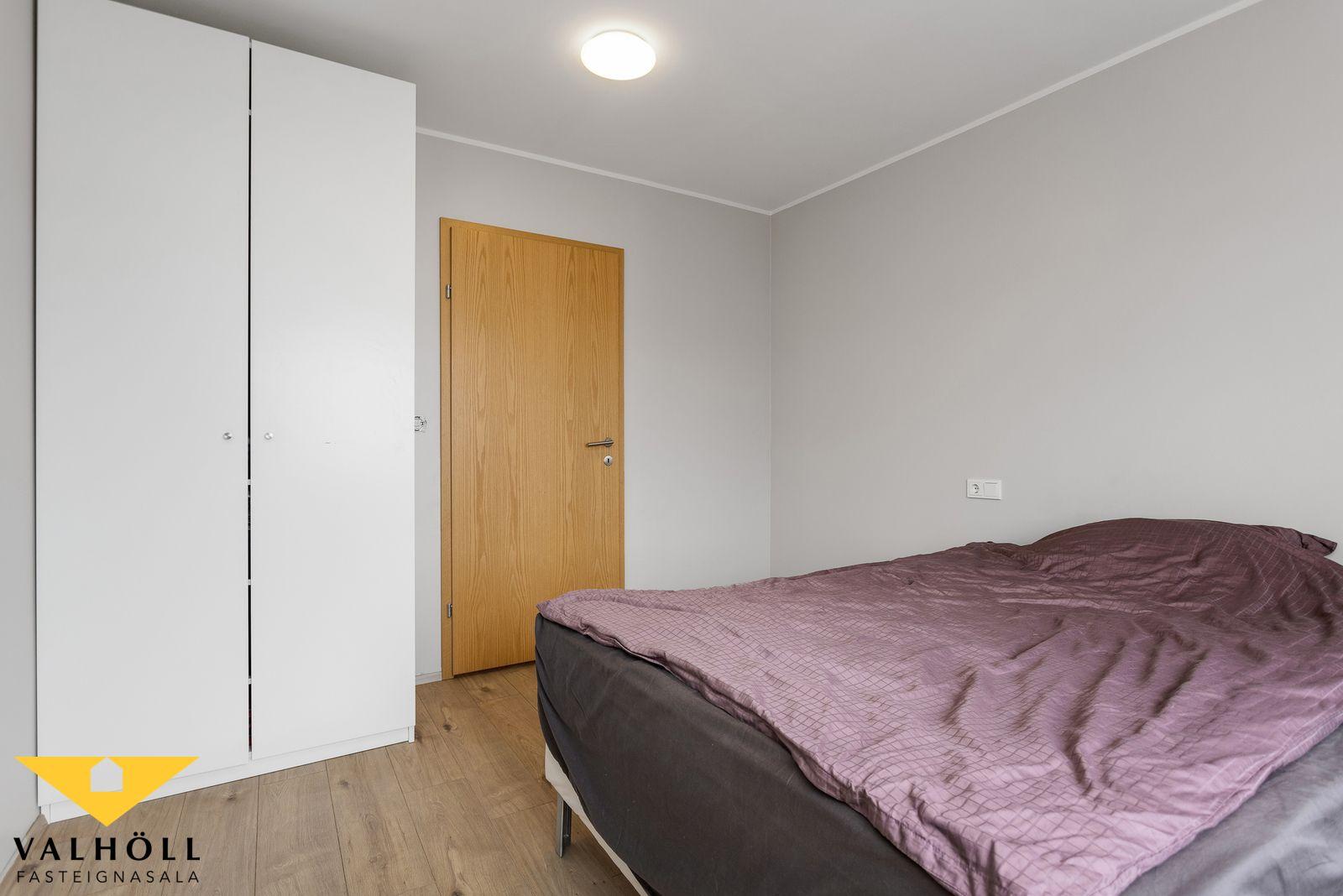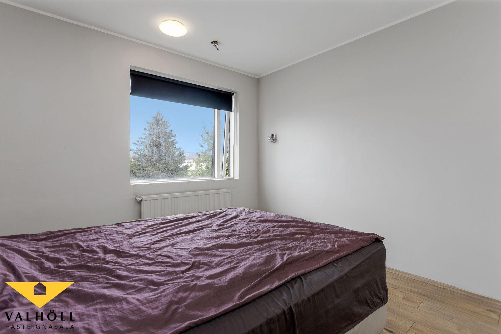 Eignin hefur verið breytt frá upphaflegum teikningum og er þess virði að skoða. Í íbúðinni eru nú 2 mjög rúmgóð herbergi, eldhús opið við stofu og í kjallara er 9,7 m² herbergi, sem er með sameiginlegum aðgangi að salerni og hefur verið nýtt til útleigu.
