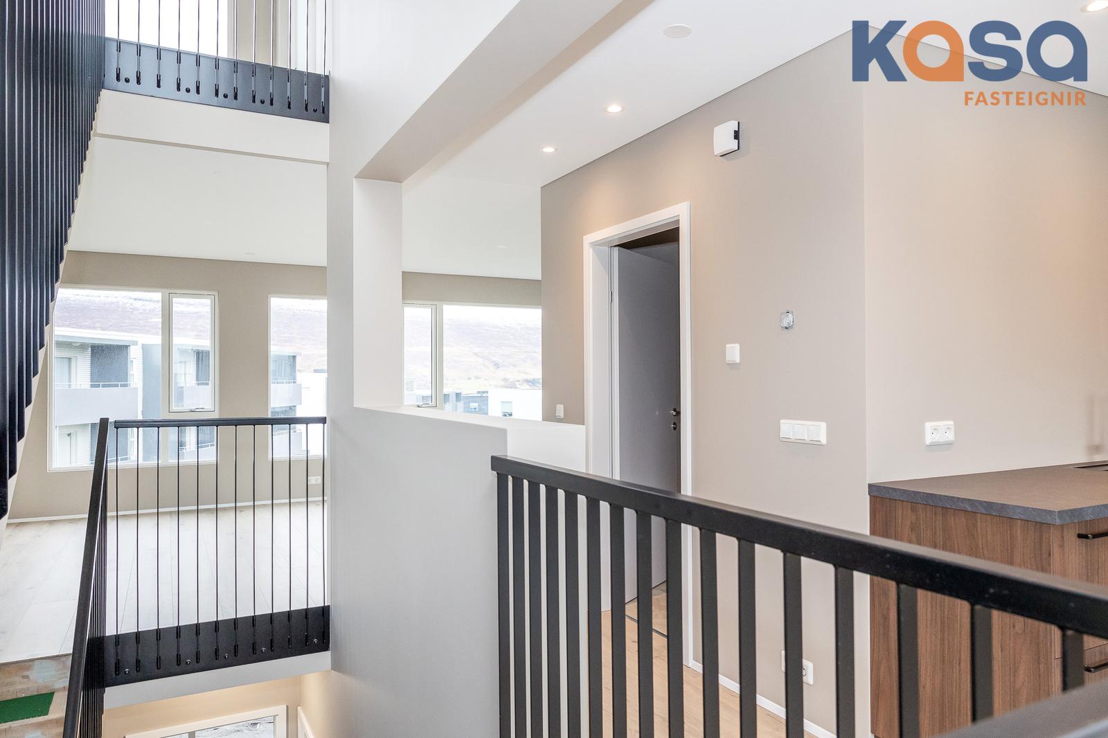 - Hljóðdempandi plötur verða í svefnherbergjum og hljóðdempandi dúkur í alrými á annarri hæð. Önnur loft verða máluð.