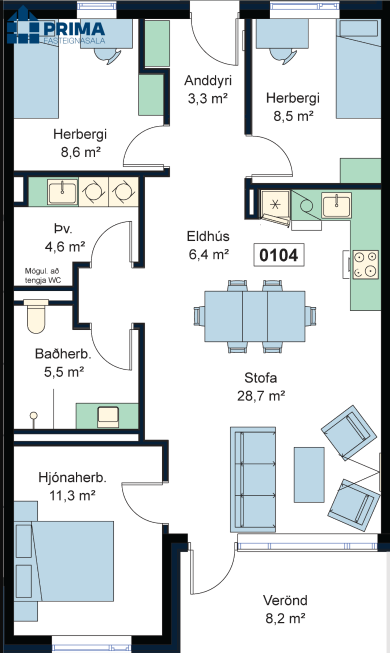 www.umbra20.isSýnum daglega skoðanir bókist á hronn@primafasteignir.is / s: 692 3344Íbúð 104 er 4ja herbergja íbúð með sérinngangi á jarðhæð.