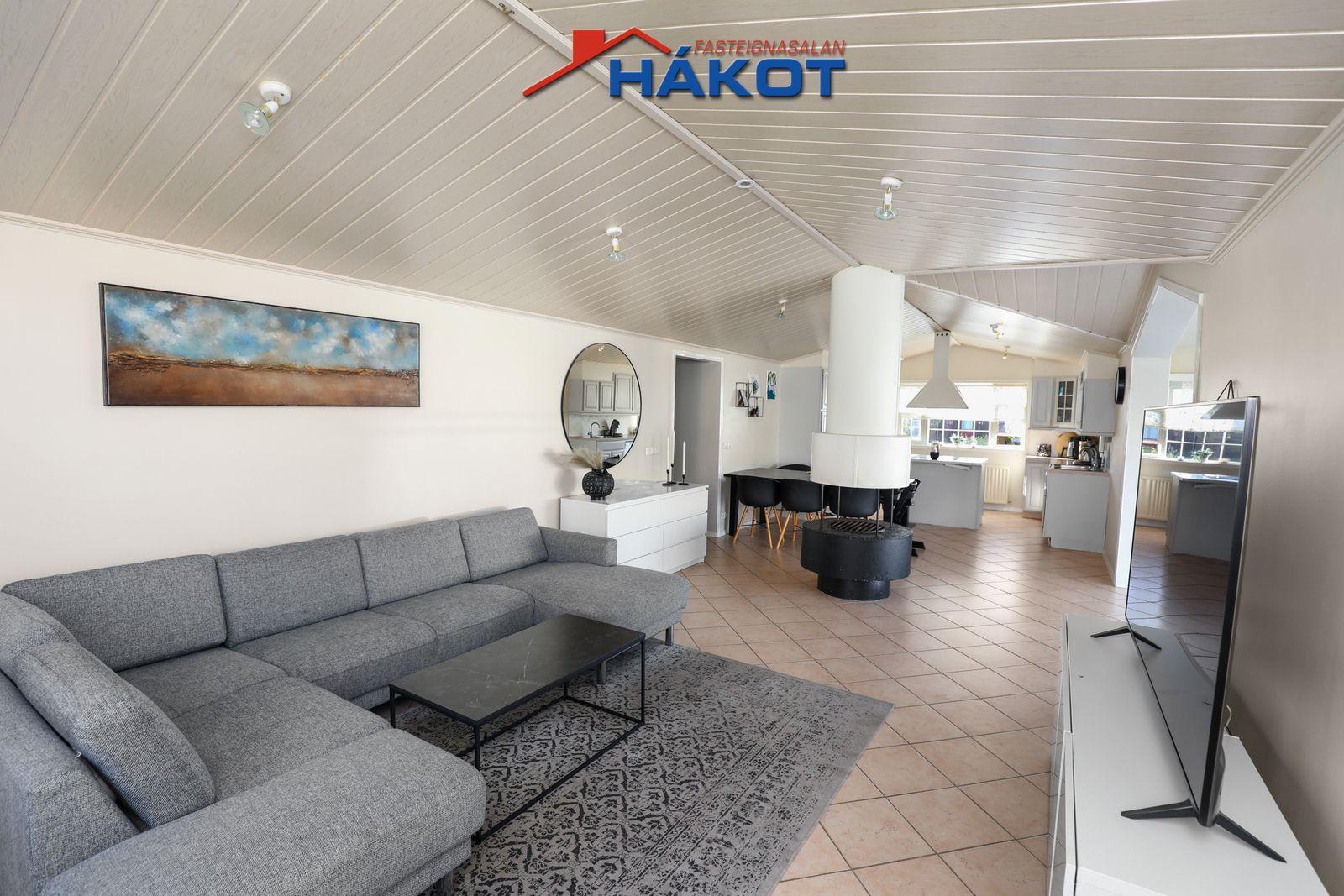 Arin miðsvæðis á milli eldhúss, stofu og sólstofu. Komnar undirstöður fyrir Verönd og gert ráð fyrir lögnum fyrir heitan pott. Staðsett í rótgrónu hverfi stutt frá golfvellinum.