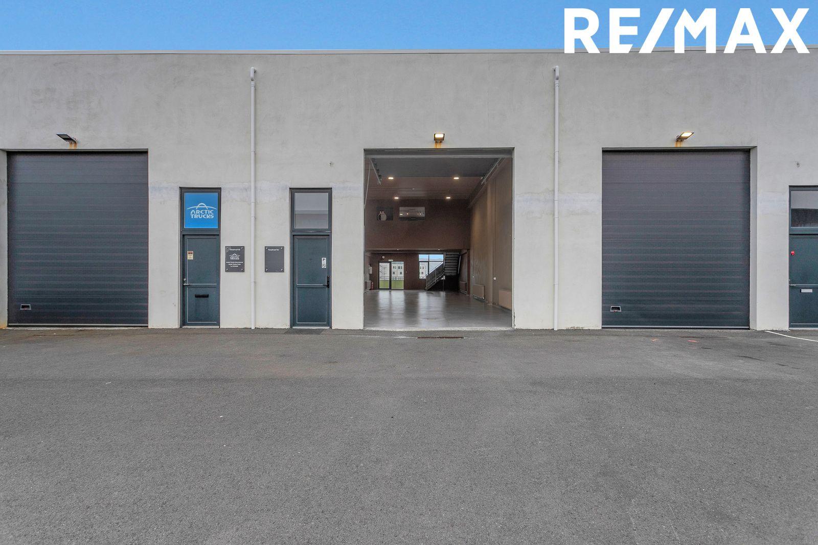 Nánari lýsing: Húsnæðið skiptist í 154 m² lagar- og iðnaðarhúsnæði og 50,1 m² skrifstofu á efri hæð. Virðisaukaskattur leggst við leigufjárhæðina. Lóðin er fullfrágengin og malbikuð með góðri aðkomu að athafnasvæði og bílastæðum.