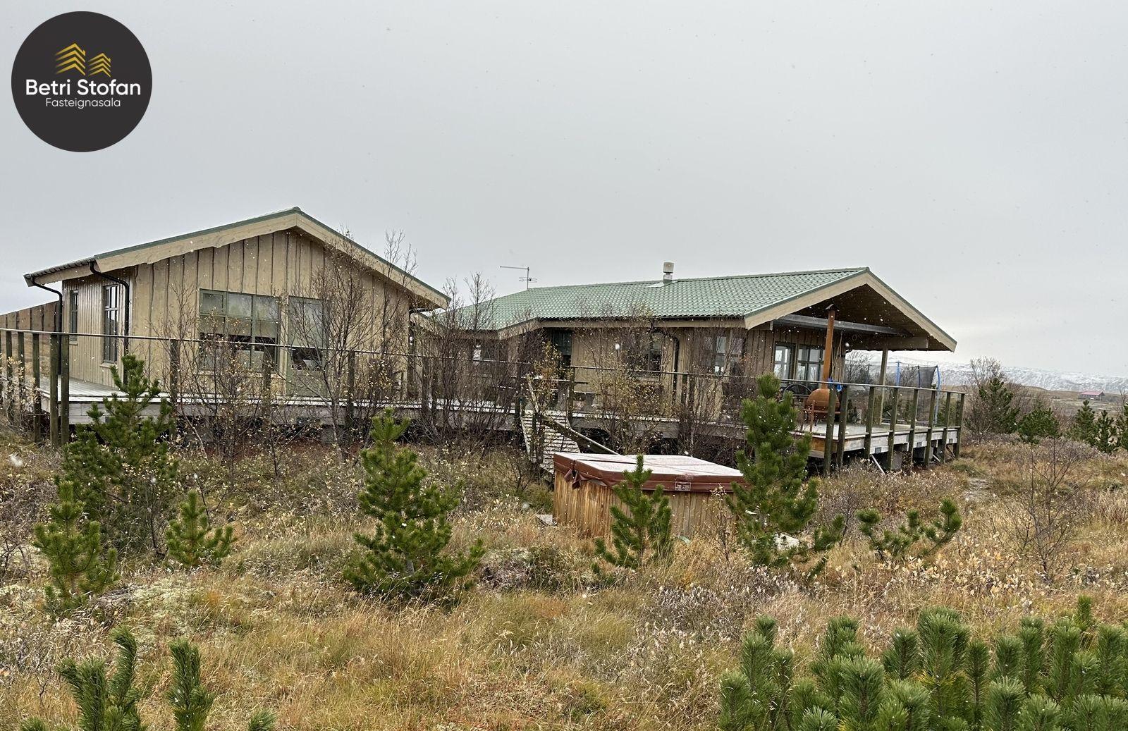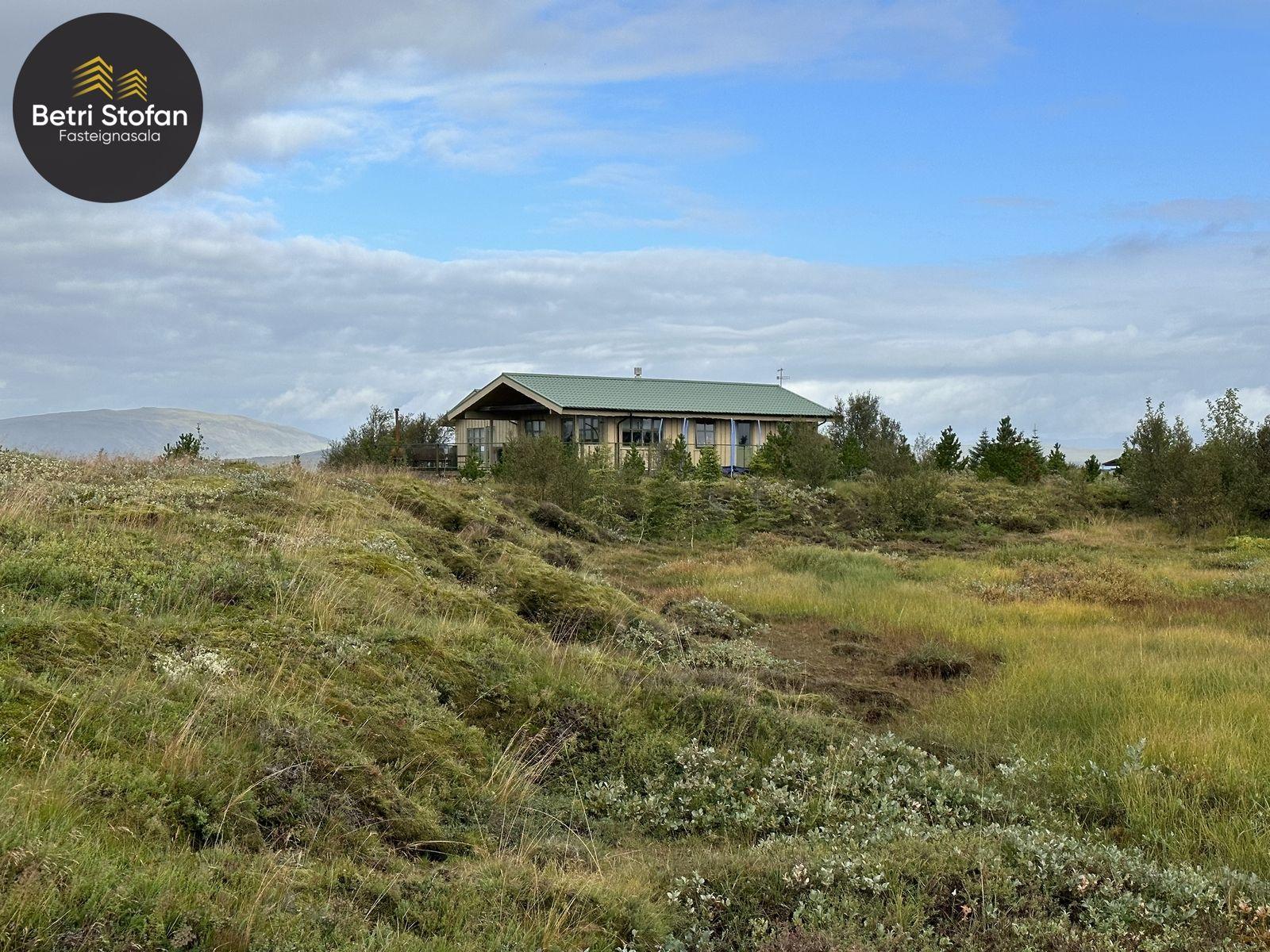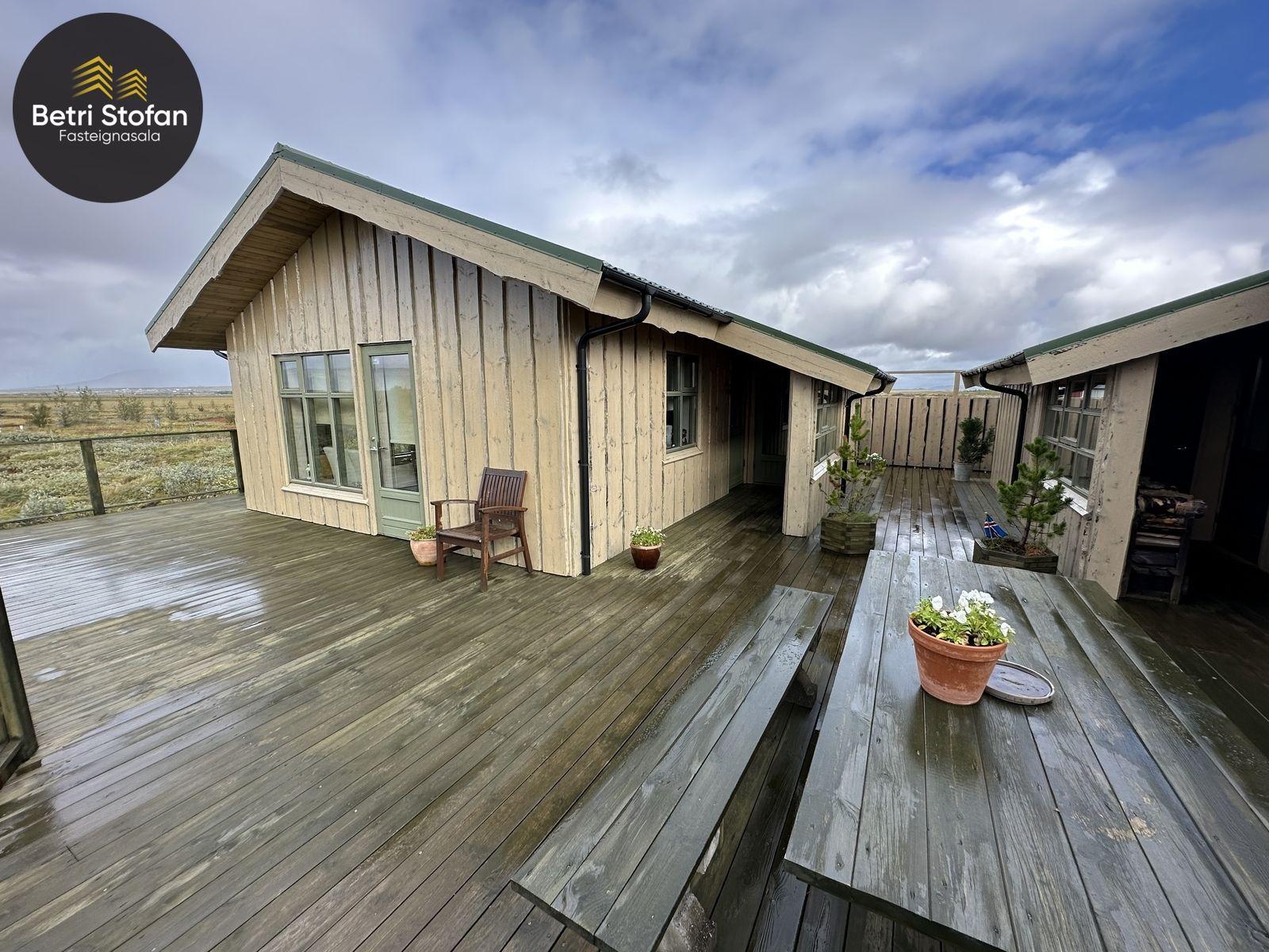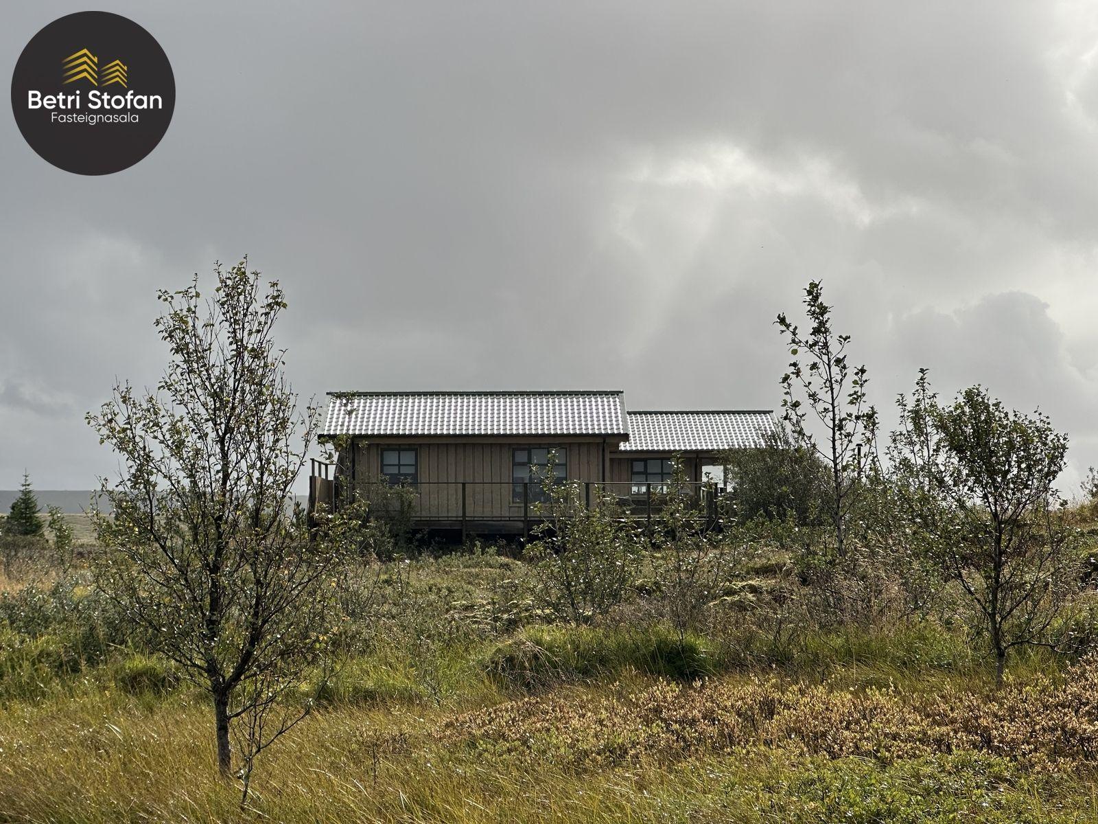 Betri Stofan og Jason Kristinn fasteignasali sími 7751515 kynna: Til sölu glæsilegt og vandað 120,2 fm heilsárshús í Kiðjabergi á lóð nr. 59 10 þús fermetra eignarlóð. Eignin skiptist í aðalhús og gestahús. Samtals 4 svefnherbergi. 2 baðherbergi, eldhús og stofu í opnu rými, geymslur/inntaksrými. Stór pallur/verönd með heitum potti. Byggingarár 2008-2010 Það er hitaveita í húsinu.
