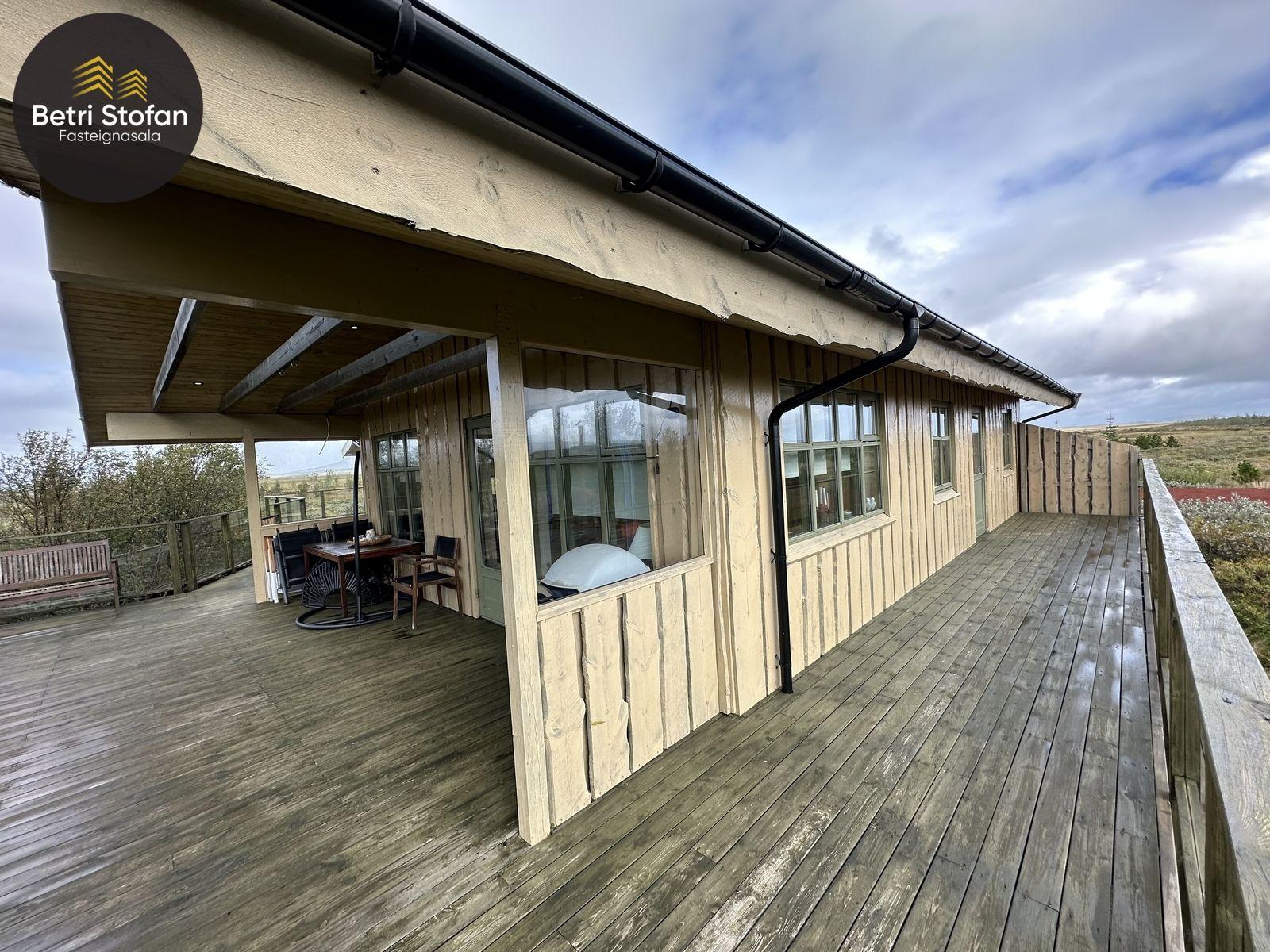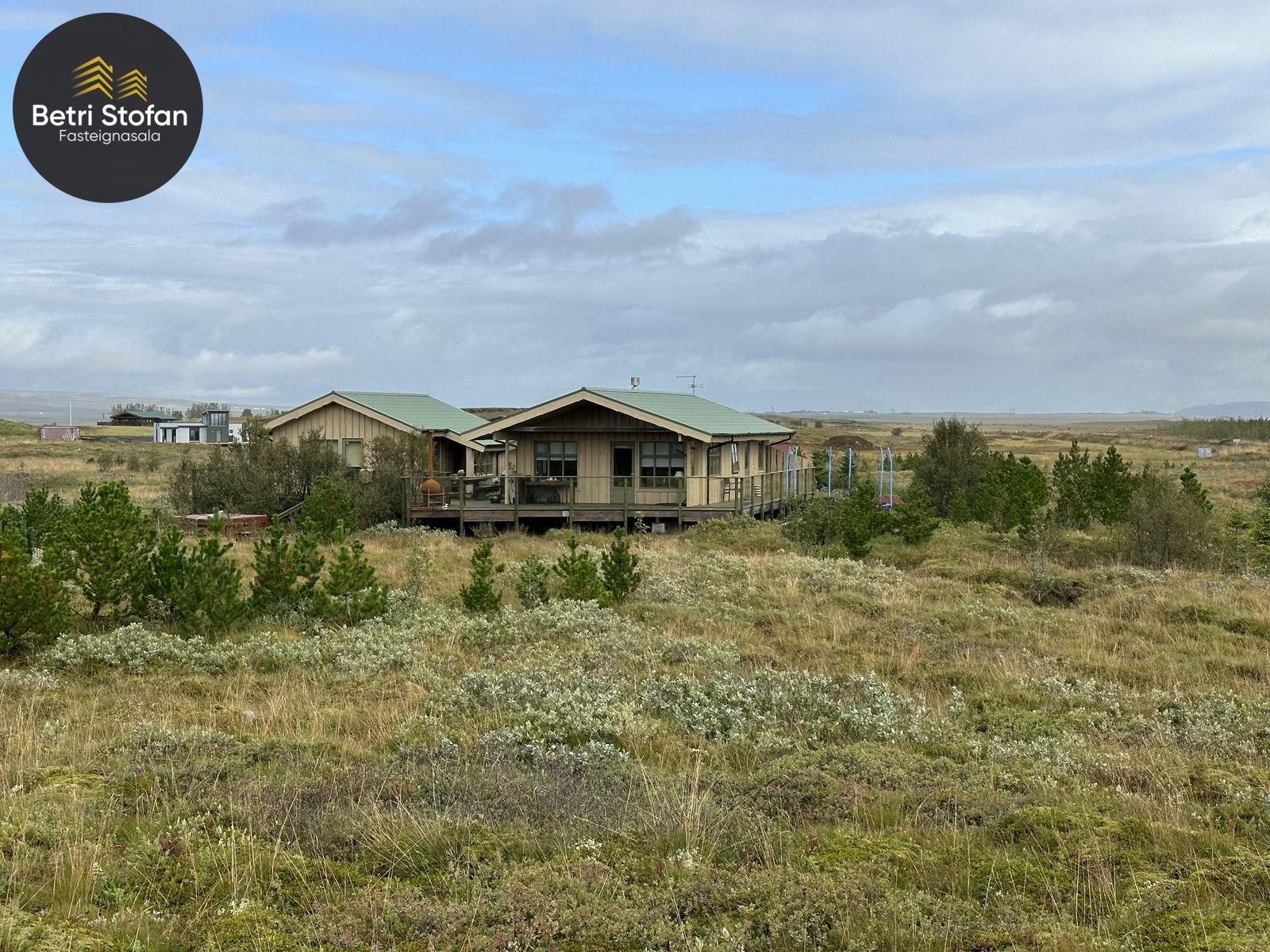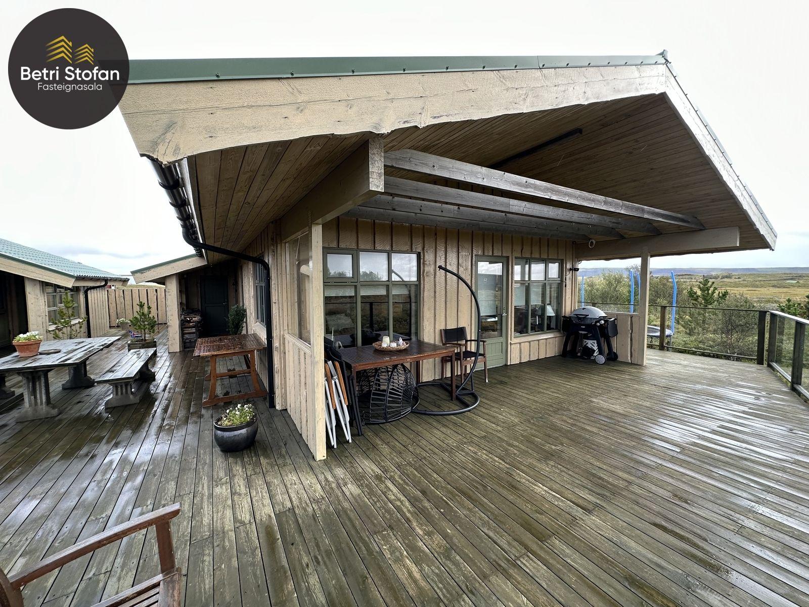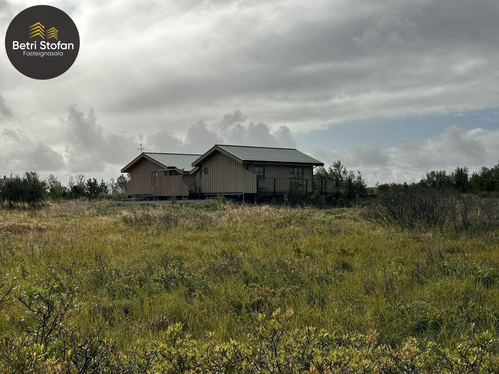 Betri Stofan og Jason Kristinn fasteignasali sími 7751515 kynna: Til sölu glæsilegt og vandað 120,2 fm heilsárshús í Kiðjabergi á lóð nr. 59 10 þús fermetra eignarlóð. Eignin skiptist í aðalhús og gestahús. Samtals 4 svefnherbergi. 2 baðherbergi, eldhús og stofu í opnu rými, geymslur/inntaksrými. Stór pallur/verönd með heitum potti. Byggingarár 2008-2010 Það er hitaveita í húsinu.