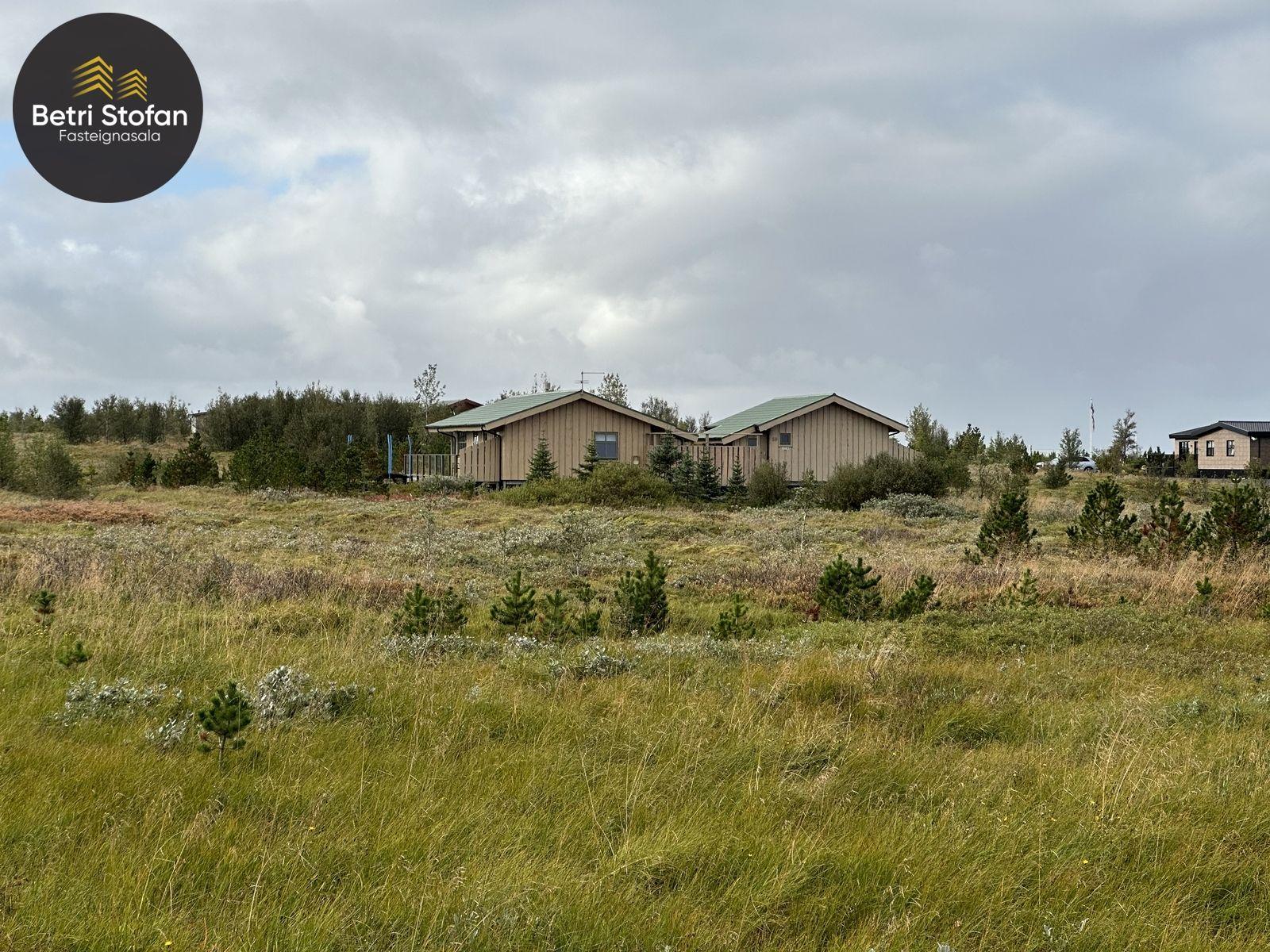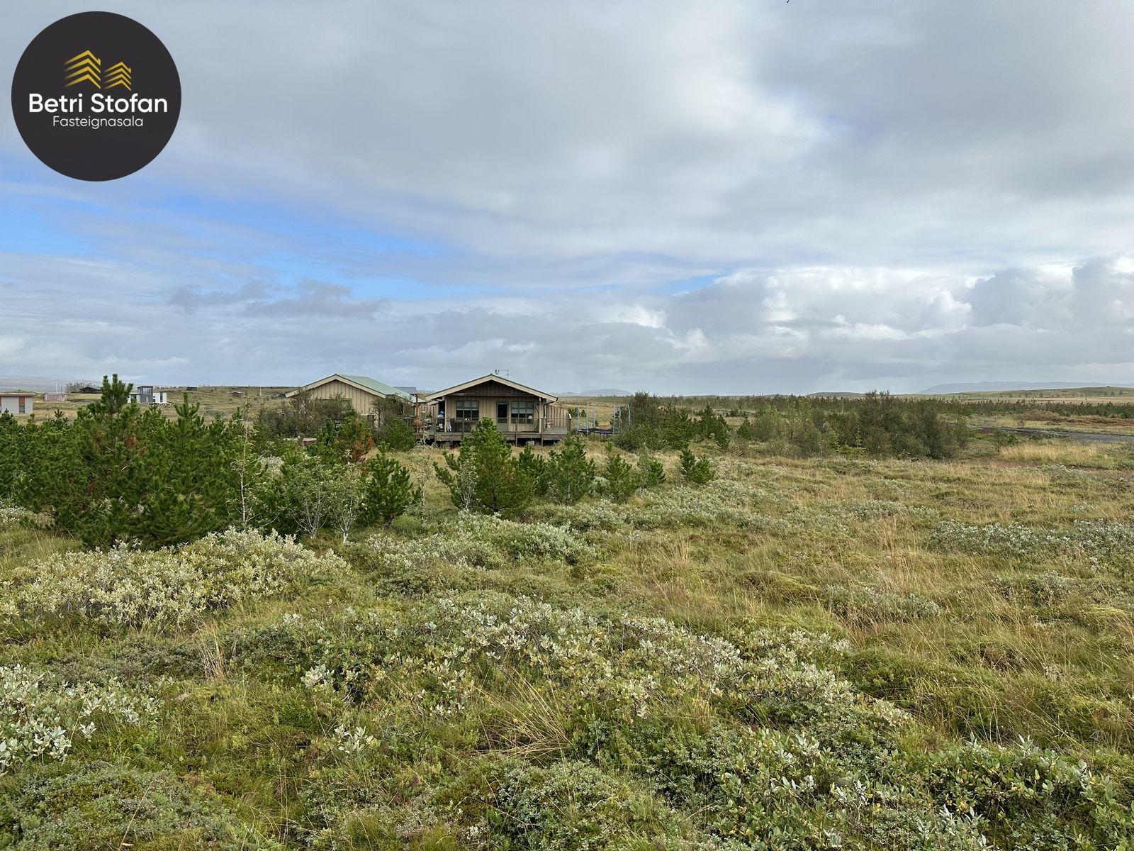 Lóðin er 10.000 fm eignarlóð og frábær 18 holu golfvöllur á svæðinu.