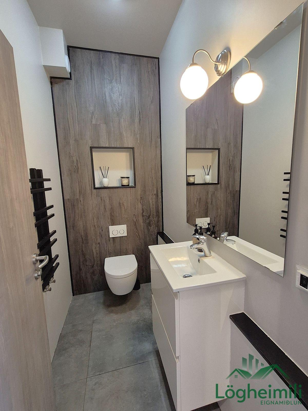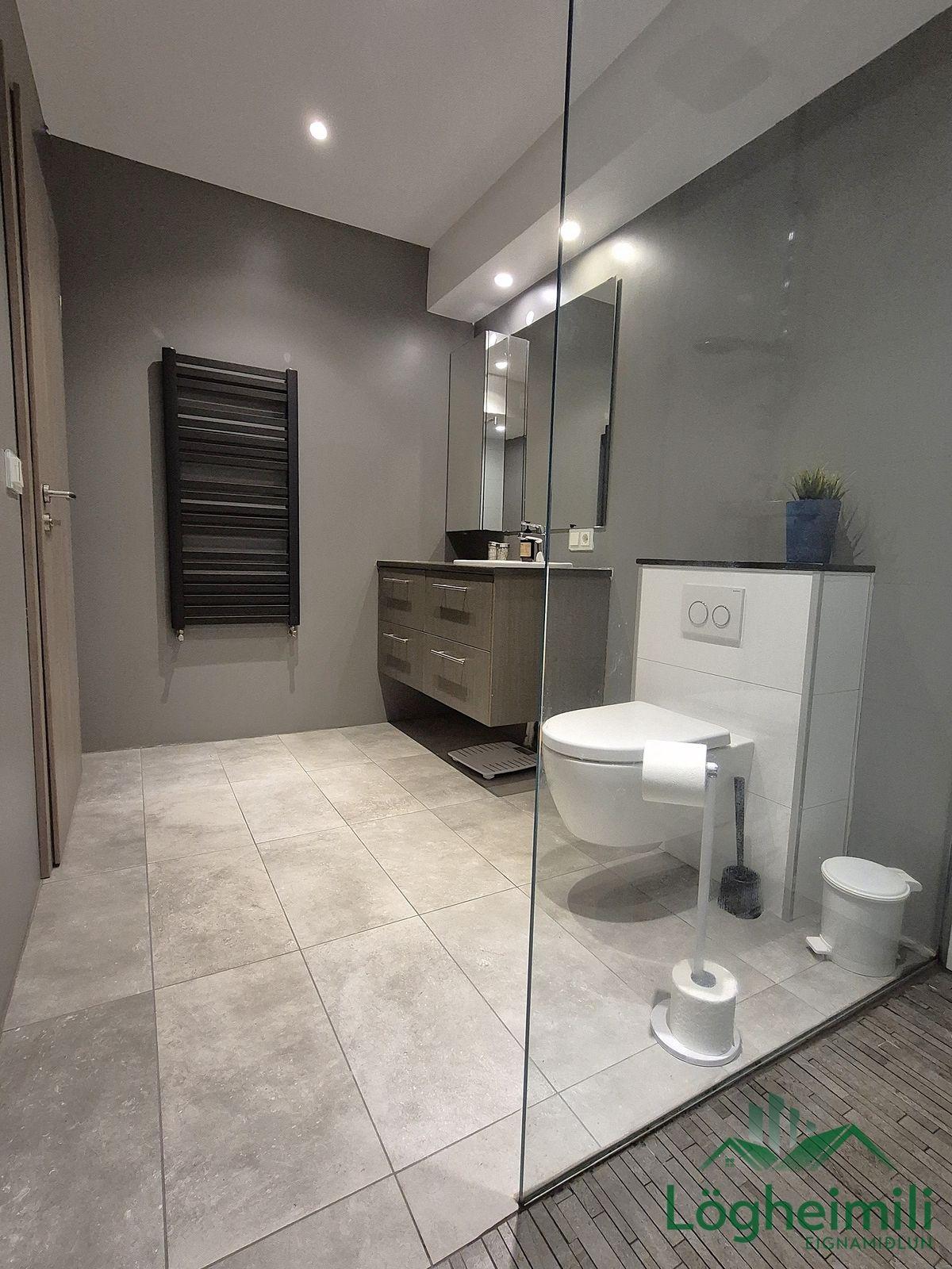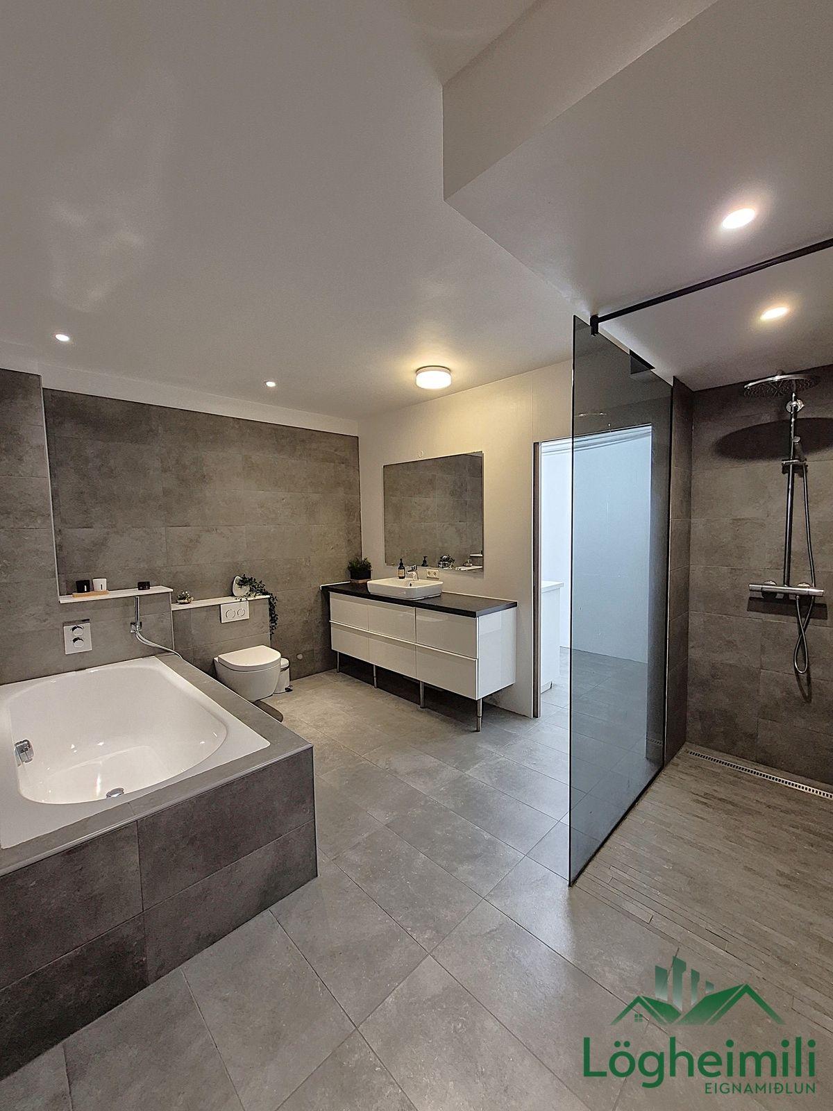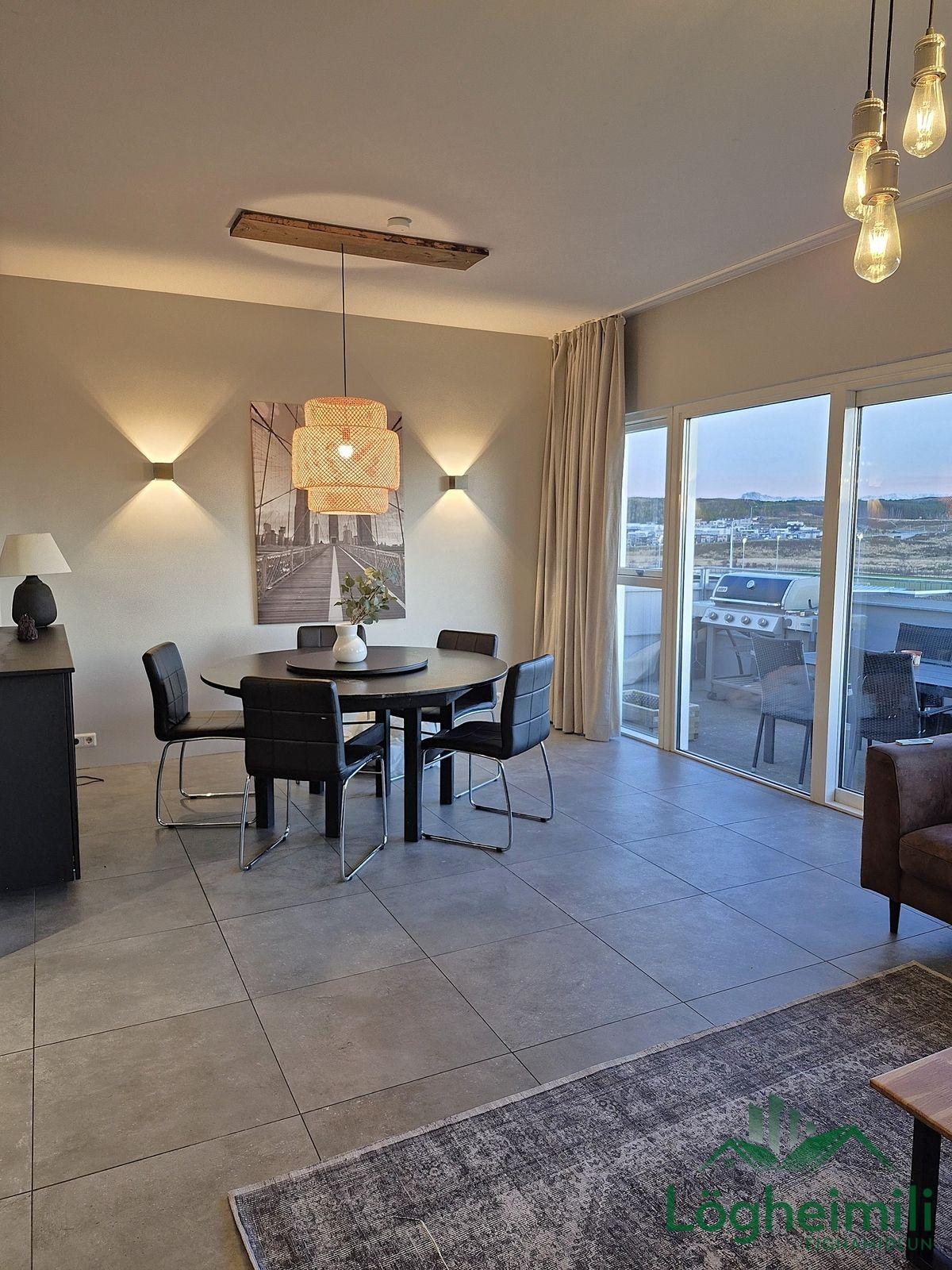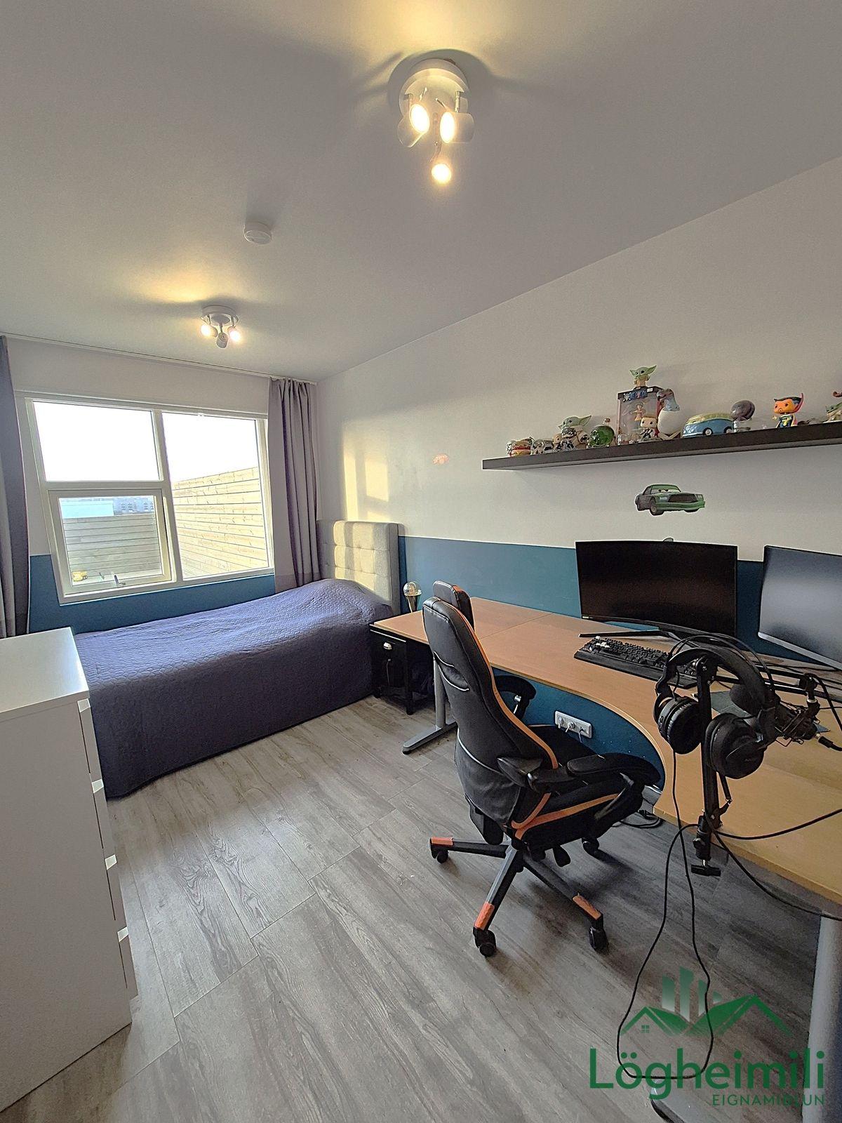 Annað: Samkvæmt fasteignayfirliti HMS er efri hæð: íbúð 68,1 fm., geymsla 9,1 fm. (sem hefur ekki verið stúkuð af í bílskúr), bílskúr 26,9 fm. og neðri hæð: íbúð 108,6 fm., eða samtals 212,7 fm., byggt árið 2016. Skipulagi hefur verið breytt frá teikningu, t.d. er þvottaherbergi þar sem sauna er á teikningu og geymsla þar sem þvottaherbergi er á teikningu. Sem endaraðhús nýtur eignin aukins næðis og betra aðgengis þar sem hægt er að ganga meðfram húsinu út á verönd.