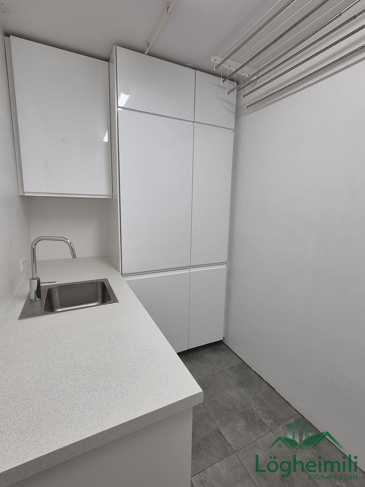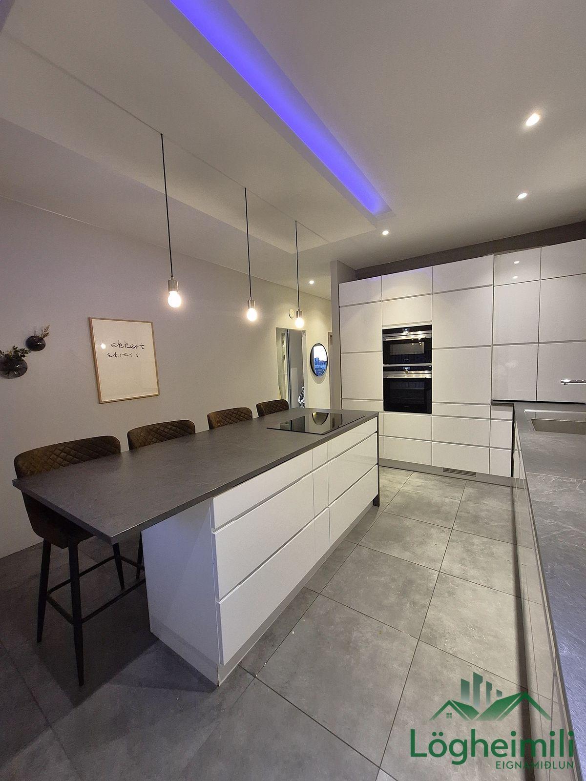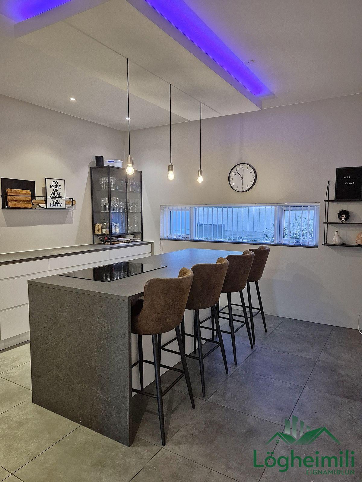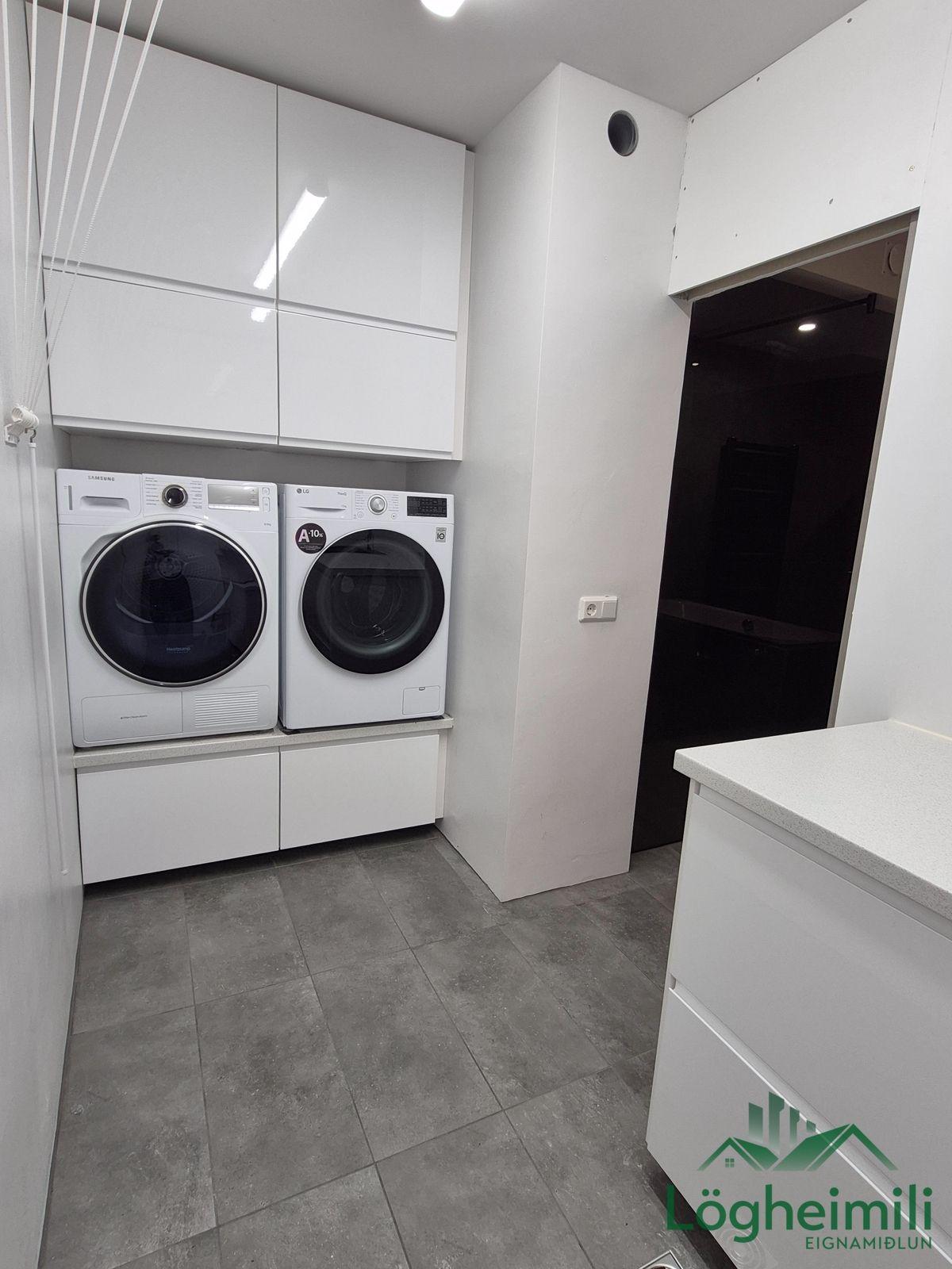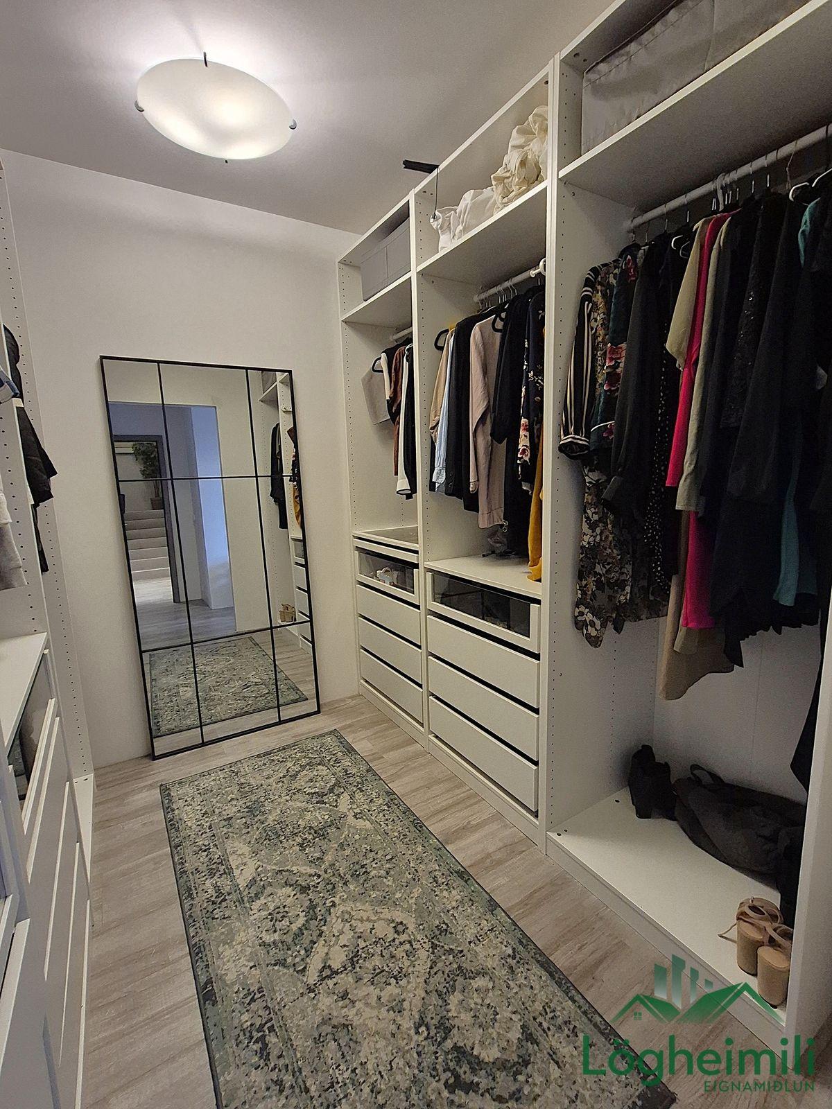 Annað: Samkvæmt fasteignayfirliti HMS er efri hæð: íbúð 68,1 fm., geymsla 9,1 fm. (sem hefur ekki verið stúkuð af í bílskúr), bílskúr 26,9 fm. og neðri hæð: íbúð 108,6 fm., eða samtals 212,7 fm., byggt árið 2016. Skipulagi hefur verið breytt frá teikningu, t.d. er þvottaherbergi þar sem sauna er á teikningu og geymsla þar sem þvottaherbergi er á teikningu. Sem endaraðhús nýtur eignin aukins næðis og betra aðgengis þar sem hægt er að ganga meðfram húsinu út á verönd.