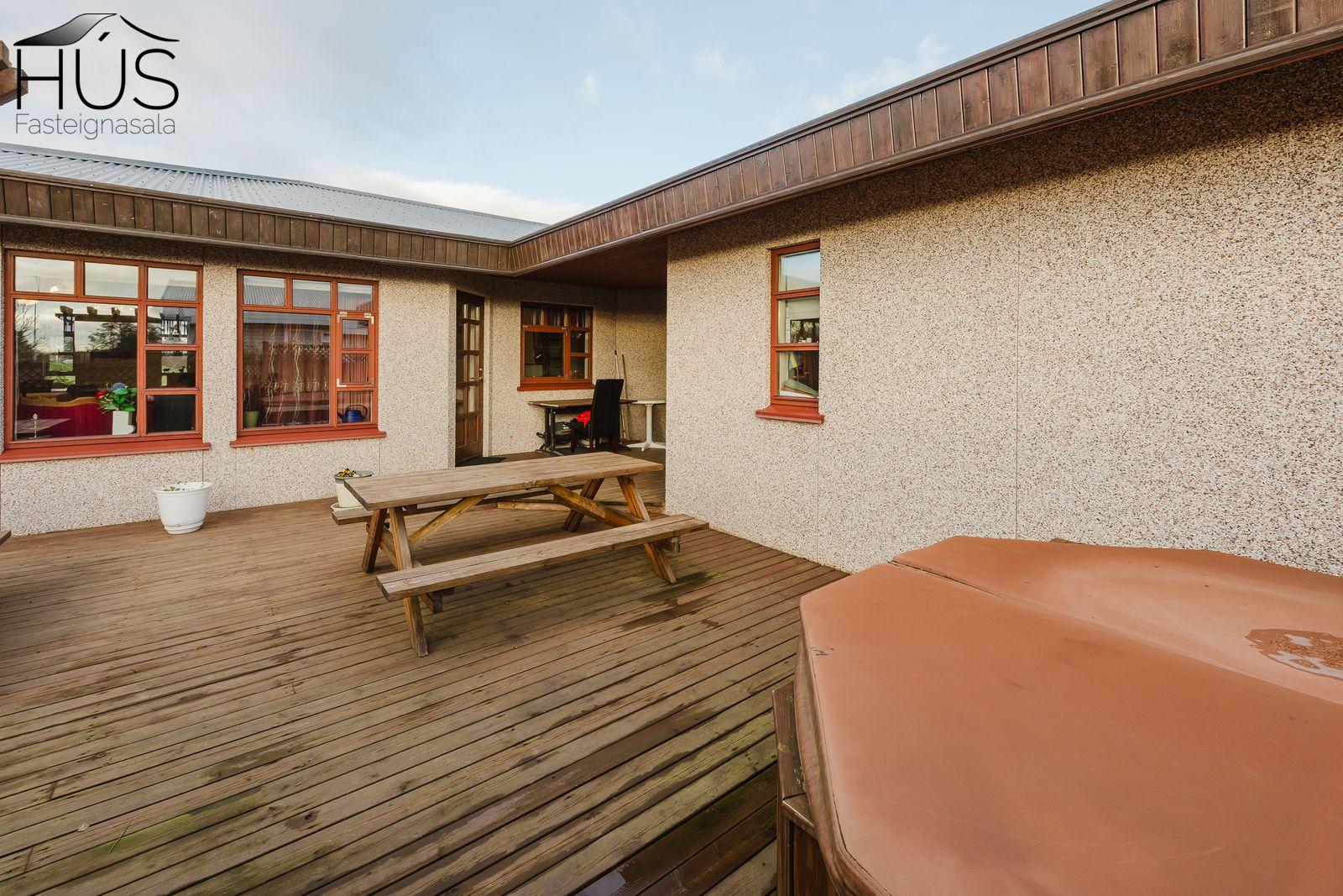 Hafsteinn Þorvaldsson fasteignasali ásamt HÚS fasteignasölu kynna í einkasölu: Vandað og snyrtilegt 168,2 fm einbýlishús með 54,1 fm sambyggðum bílskúr samtals 222,3 fm byggt úr timbri árið 1998 í hinu vinsæla Grundahverfi á Selfossi. Að utan er húsið klætt með stení og járn er á þaki. Garður er gróinn, malbiksmöl í bílaplani, stór timbur sólpallur með skjólgirðingu og heitum potti. Húsið stendur næst innst í botnlangagötu á frábærum stað á Selfossi.