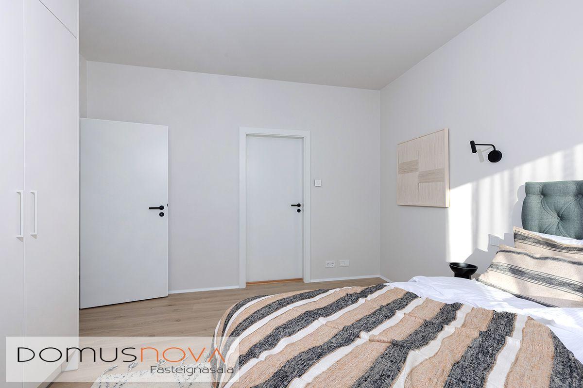 Hjónaherbergi er rúmgott með vönduðum fataskáp og