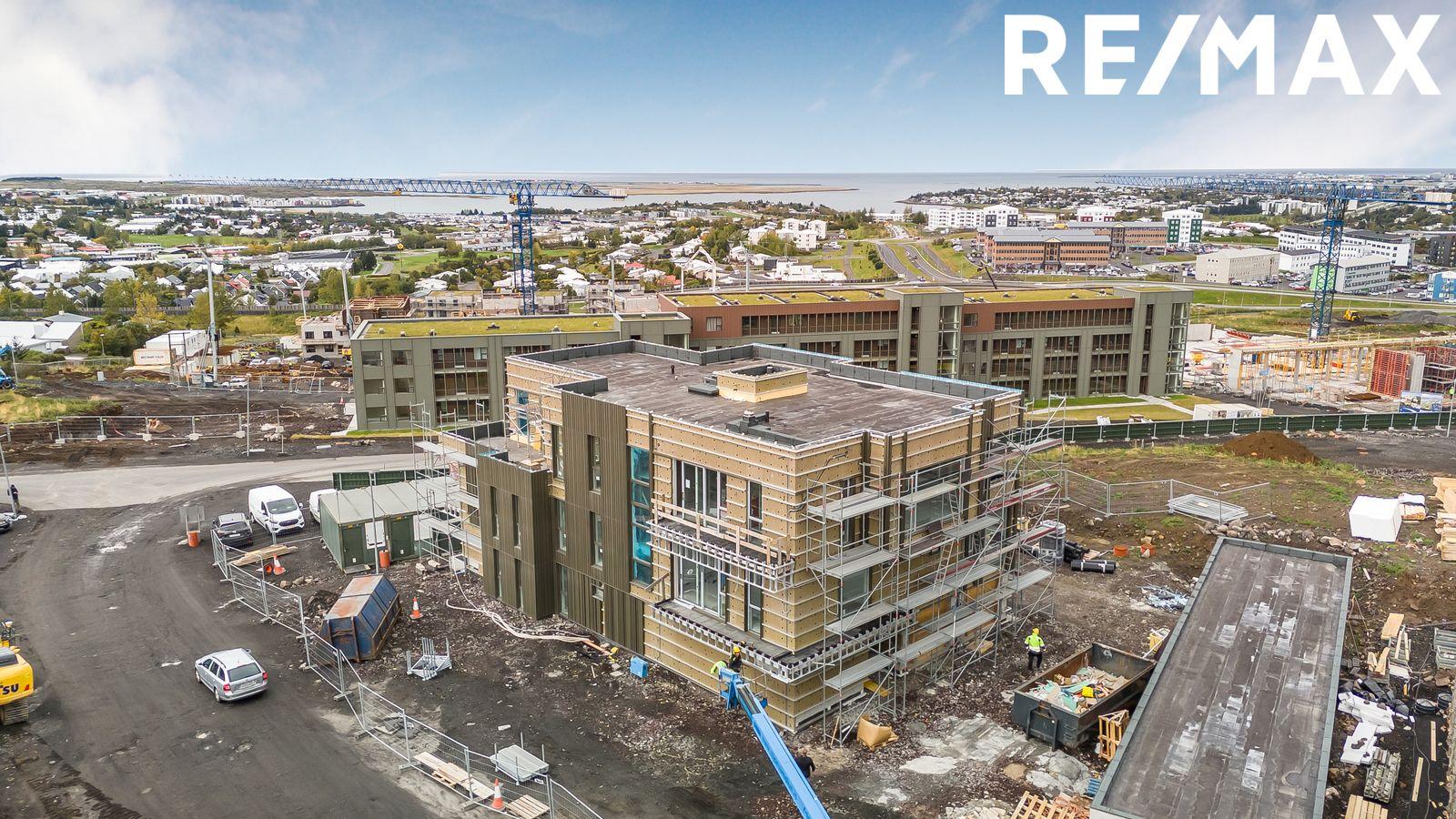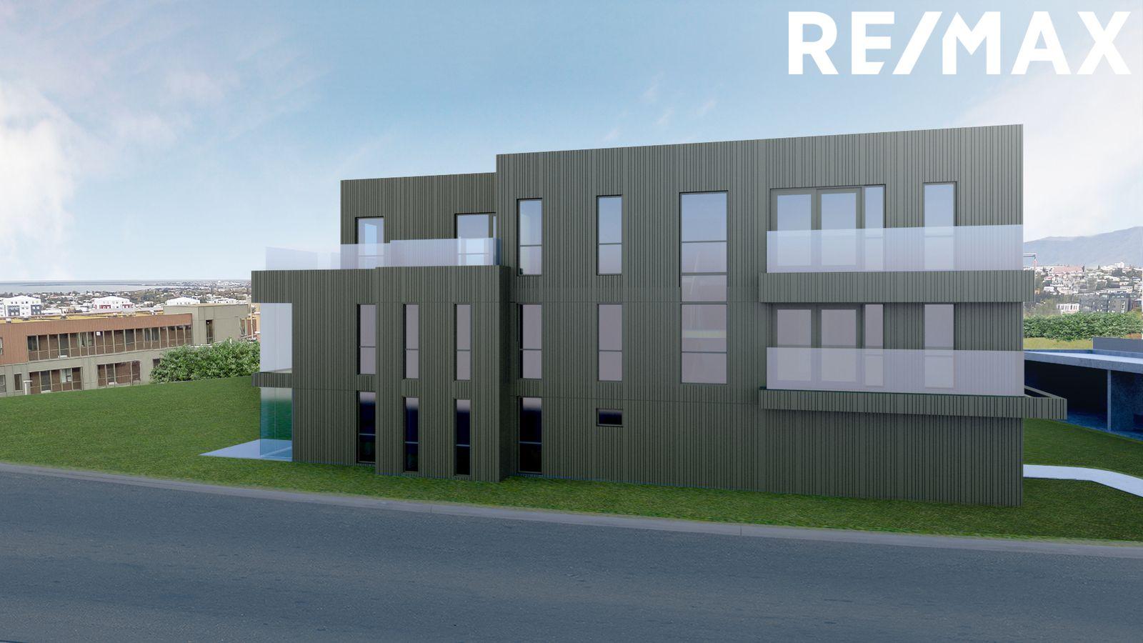 Húsið:Arkitektar og aðalhönnuðir hússins eru Sen&Son arkitektar ehf. Húsið er steinsteypt þriggja hæða fjölbýlishús með 7 íbúðum í einum stigagangi með lyftu. Á 1. hæð er anddyri, geymslur íbúða, tæknirými og tveir innbyggðir bílskúrar. Á 1. hæð eru einnig tvær glæsilegar íbúðir með beinu aðgengi út í garð. Á 2. hæð hússins eru þrjár virkilega flottar íbúðir og á 3. hæð hússins eru svo tvær stórglæsilegar íbúðir, en með þeim fylgja bílskúrarnir. Á lóðinni er bílageymsla með 7 bílastæðum. Bílageymslan er opin að hluta með lokuðum hliðum og upphituðu gólfi. Gert er ráð fyrir lagnaleið að hverju stæði fyrir möguleika á rafhleðslustöð.